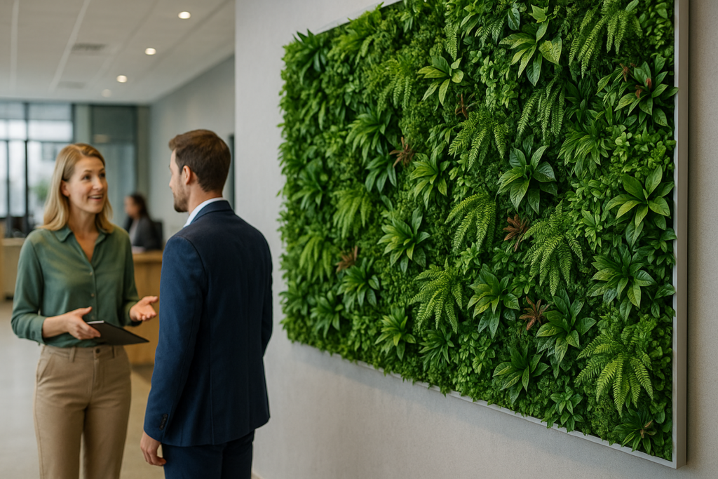 Les murs végétaux apportent une image forte en entreprise : accueil, open‑spaces, salles de réunion, showrooms…