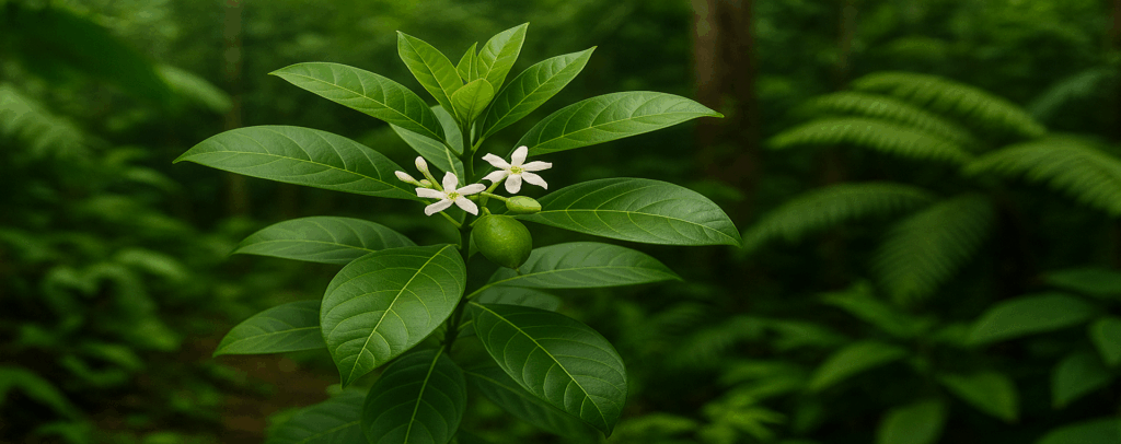 Voacanga africana : une plante méconnue aux propriétés étonnantes Le Voacanga africana est un arbre originaire d’Afrique de l’Ouest, appartenant à la famille des Apocynaceae. Il pousse principalement dans les forêts tropicales et humides, atteignant jusqu’à 6 mètres de hauteur. Il se distingue par ses grandes feuilles vertes, ses fleurs blanches et ses fruits ovoïdes […]